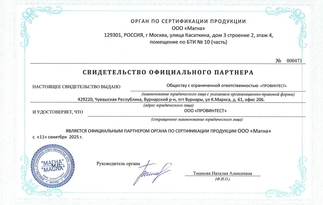 Генеральное партнерство с аккредитованным на ФСА Органом по сертификации "Приоритет"